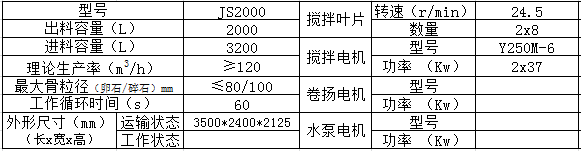 JS2000混凝土攪拌機每次出料2方,也稱為2方混凝土攪拌機、兩方攪拌機,JS2000攪拌機出料循環(huán)周期60S,120攪拌站主機使用的就是該主機是目前國內(nèi)外先進、理想的建筑設備機型,具有自動化程度高、攪拌質量好、效率高、能耗低、噪音小、操作方便、卸料速度快、襯板及葉片使用壽命長,維修保養(yǎng)方便等優(yōu)點。適用于各類大、中、小型預制構件廠及公路、橋梁、水利、港口、碼頭等工業(yè)及民用建筑工程施工部門攪拌干硬性混凝土、塑性混凝土、流動性混凝土、輕骨料混凝土和各種砂漿。